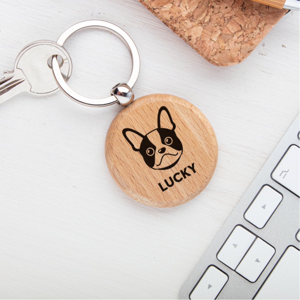 Portachiavi in legno personalizzato con razza Bulldog Francese